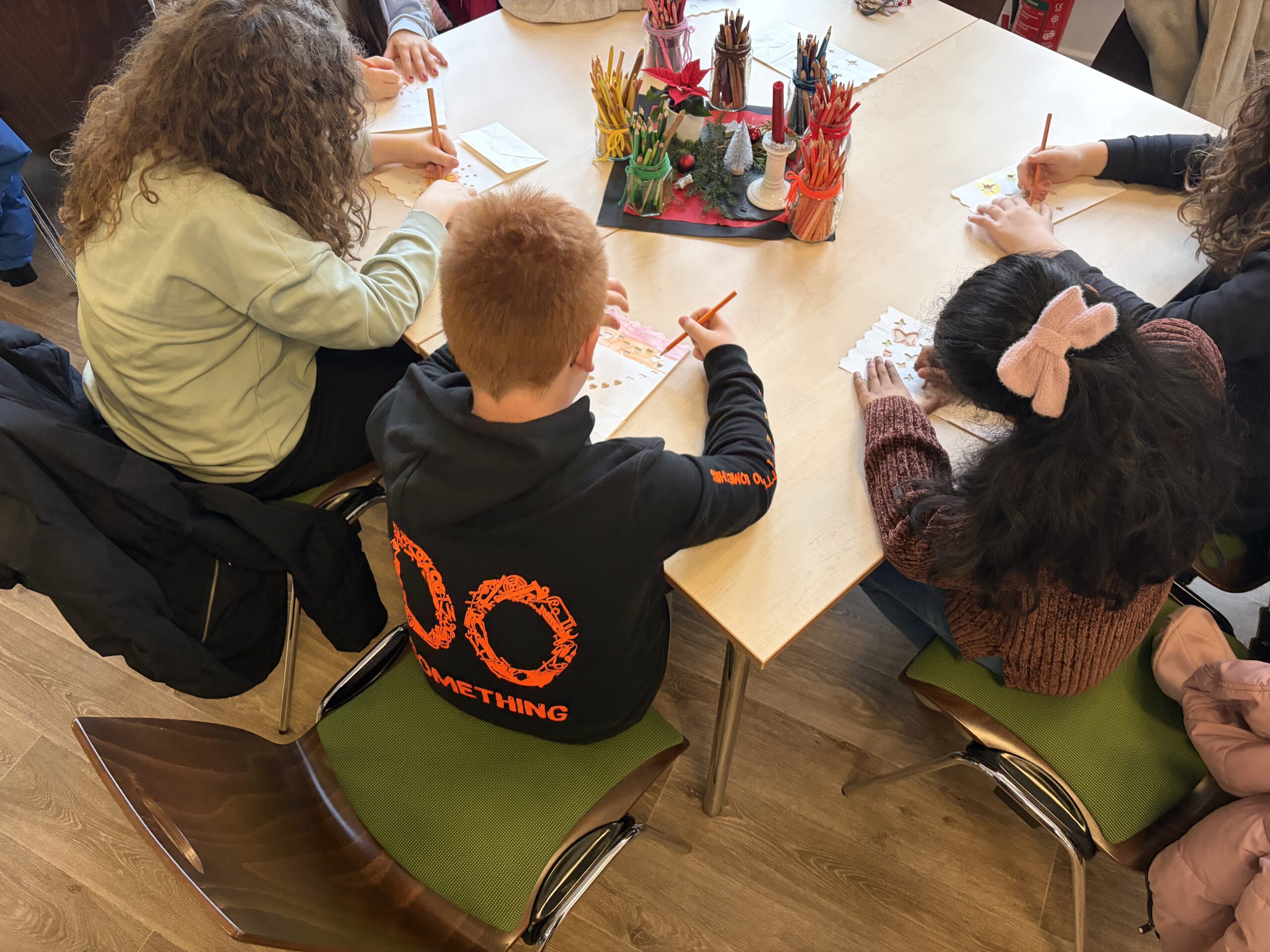 Im Anschluss an den Gottesdienst gestalteten die Schülerinnen und Schüler mit viel Kreativität Lichtertüten. Die leuchtenden Kunstwerke griffen die Gedanken des Adventsgottesdienstes auf und machten sichtbar, wie jeder Einzelne ein kleines Licht in die Welt tragen kann.
