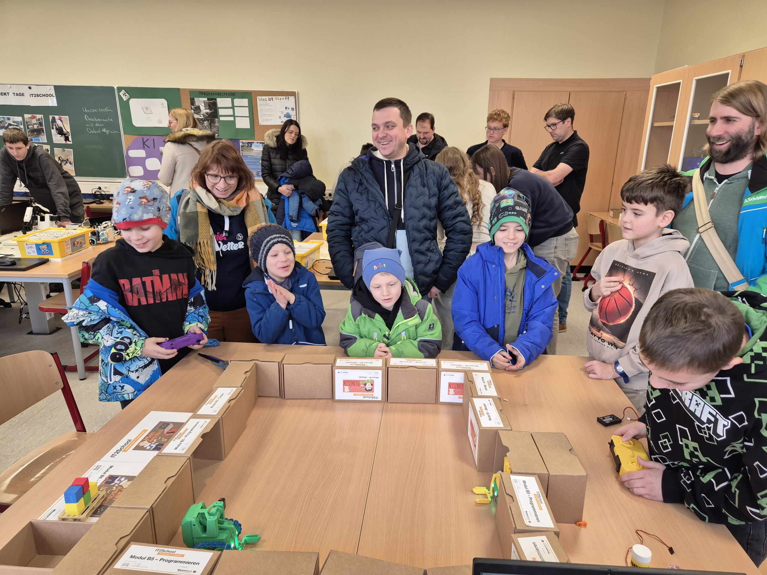 Nach einer kurzen Begrüßungsrede und der musikalischen Einstimmung auf den Tag durch ein gemischtes Blasorchester unter Leitung von Anke Braun und Inge Lönartz erkundeten die Grundschüler mit ihren Eltern in geführten Gruppen beide Gebäude und informierten sich über das breite Angebot der Gemeinsamen Orientierungsstufe: So wurden in den naturwissenschaftlichen Fachräumen spannende Experimente durchgeführt, im Kunstprojekt kleine Kunstwerke geschaffen, während im IT-Bereich Tablets sowie computergesteuerten Roboterarme erprobt wurden.