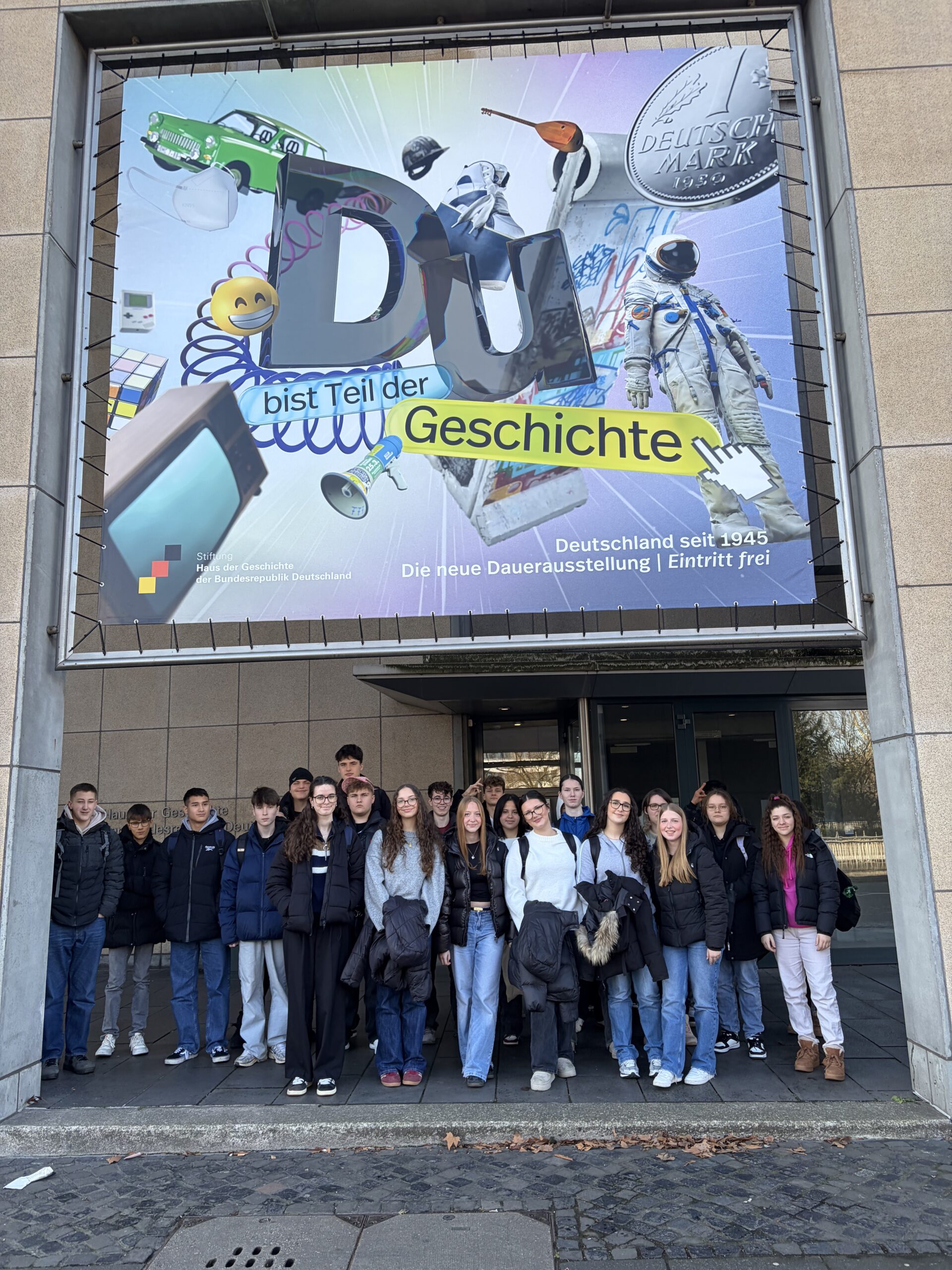 Danach ging es weiter zum Haus der Geschichte der Bundesrepublik Deutschland. Nach der Ankunft hatten die Schülerinnen und Schüler etwas Zeit, um sich die Ausstellungen eigenständig anzusehen. Anschließend folgte eine Führung durch das Museum. Dabei wurde die Entwicklung Deutschlands nach 1945 dargestellt. Themen wie die Nachkriegszeit, die Teilung Deutschlands in vier Besatzungszonen und die Wiedervereinigung 1990 wurden verständlich erklärt. Besonders spannend waren die vielen Originalexponate und Filme, durch die die Geschichte lebendig wirkte.