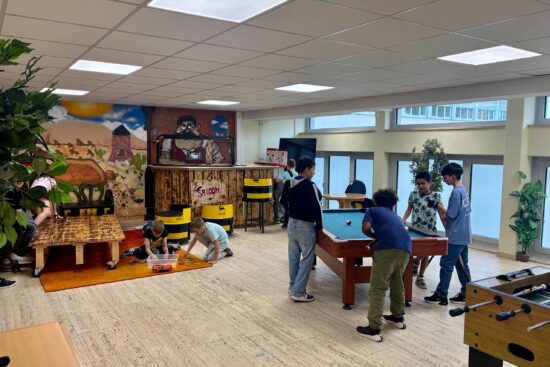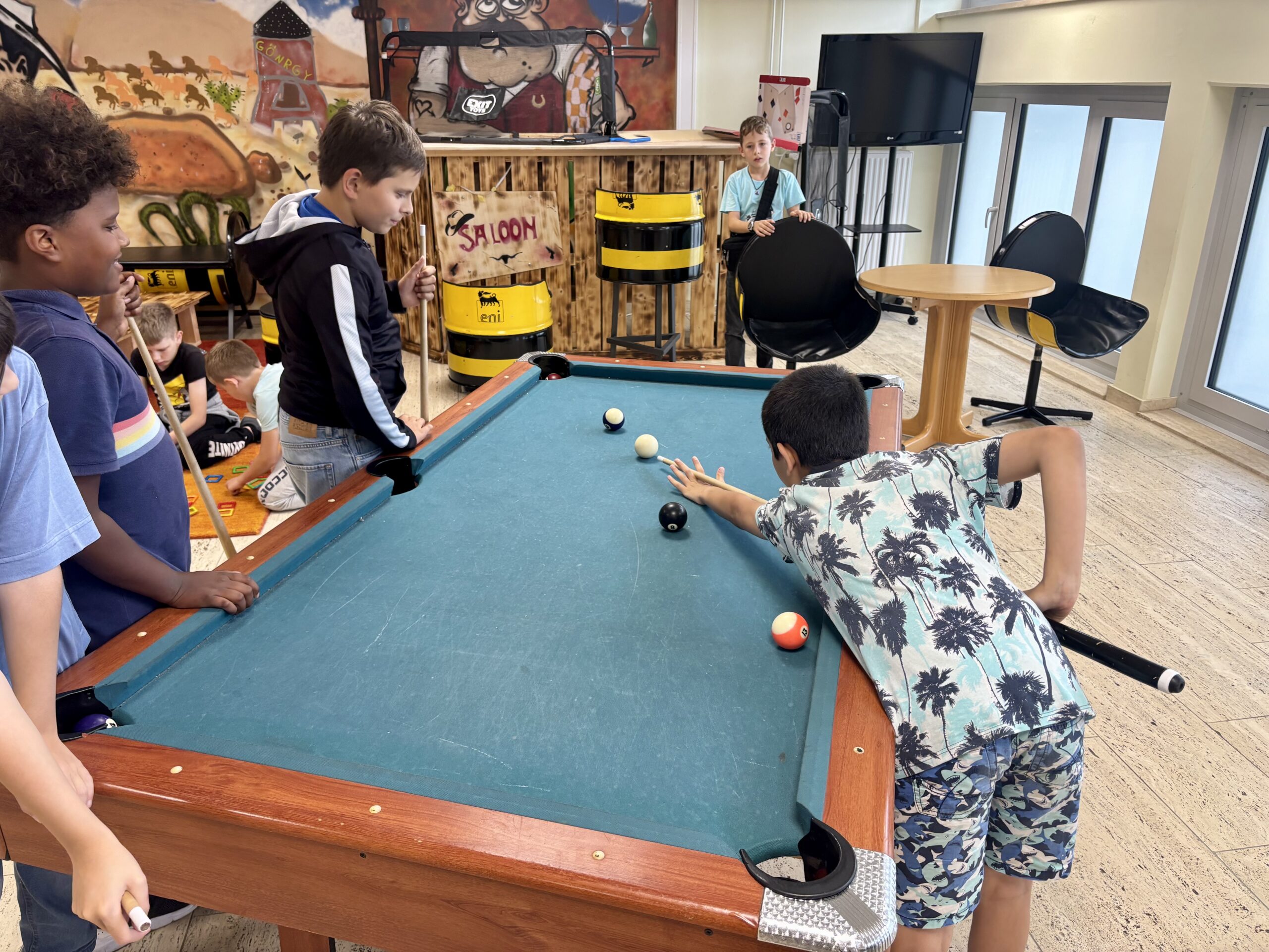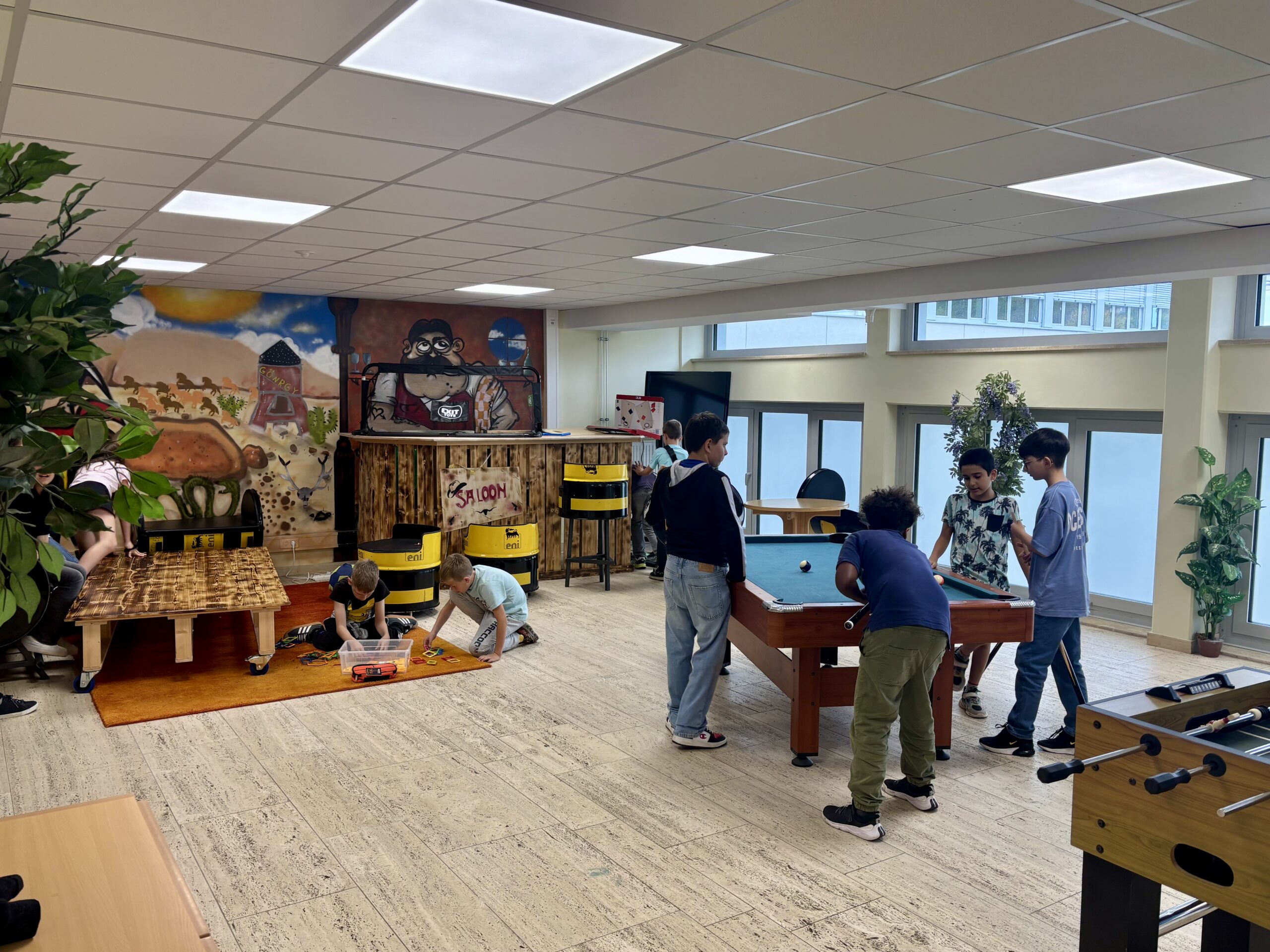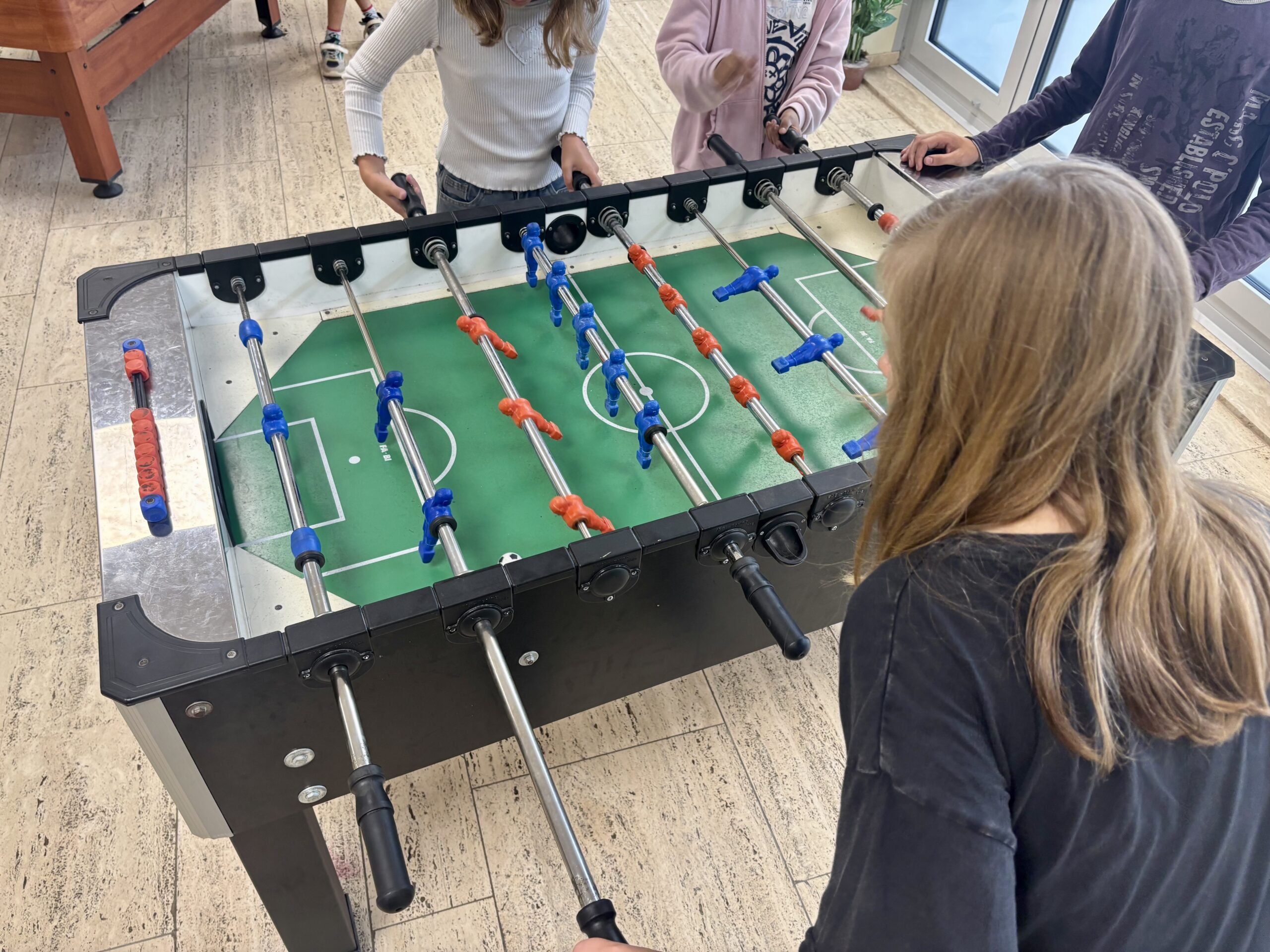 Weil man nicht nur an einem Stück lernen kann, sondern sich auch entspannen muss, haben die GTS-Schülerinnen und -Schüler eine lange Mittagspause. Es gibt einen GTS-Bereich, in dem man Billard, Kicker oder Gesellschaftsspiele spielen und vom anstrengenden Vormittag entspannen kann. Viele Kinder spielen aber auch auf dem Pausenhof, dort hast du sicher schon die Kicker und die Tischtennisplatten gesehen.